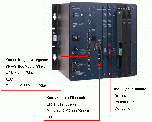 Otwartość systemu RX7i pozwala na tworzenie aplikacji za pomocą różnych języków programowania, a komunikacja za pomocą OPC zapewnia integrację z systemami SCADA, bazami danych oraz systemami nadrzędnymi. PACSystems RX7i może dodatkowo równolegle obsługiwać moduły komunikacyjne sieci Profibus DP, DeviceNet, Genius oraz Ethernet.