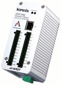 JetI/O 6550 jest modułem wyposażonym w 14 wejść i 8 wyjść dyskretnych. Wejścia modułu mogą zostać skonfigurowane do pracy w trybie szybkiego licznika impulsów, z maksymalną częstotliwością zliczania do 100 Hz. Wyjścia urządzenia mogą generować impulsy o konfigurowanym programowo czasie wypełnienia. Moduł dyskretny, daje możliwość lokalnego sterowania, dzięki możliwości budowaniaintuicyjnych zależności logicznych opartych o algorytm "Condition & Go",zbliżony konstrukcją do instrukcji warunkowej „IF-THEN".